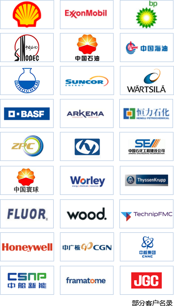 公司憑借強大的綜合實力獲得了國內外眾多大型企業集團的高度認可,形成了良好的品牌效應。公司是中石化、中石油、中海油、中化集團、中核、中廣核、殼牌、??松梨凇⒂汀⒓幽么笊颇茉?、巴斯夫、博萊克威奇、塞班、霍尼韋爾、法馬通、瓦錫蘭、蒂森克虜伯、福陸、日輝、德希尼布千代田等企業的合格供應商。